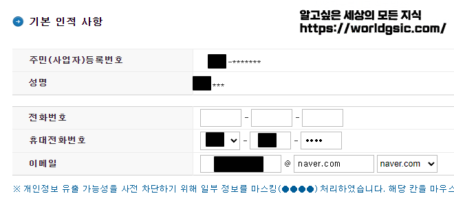 기본 인적사항이 맞게 입력되었는지 확인해 주세요