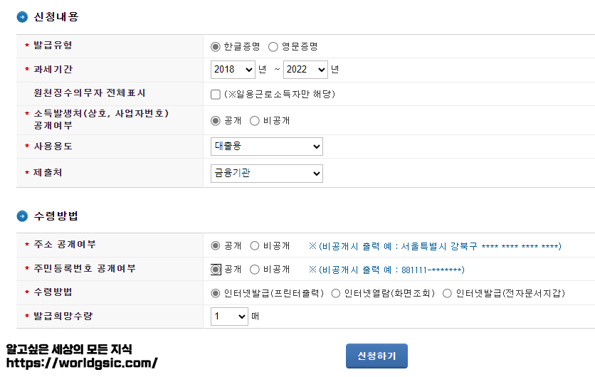 소득발생처나 주소, 주민등록 공개여부는 수령기관의 안내문을 숙지하시고 상황에 맞게 선택해 주시면 됩니다.