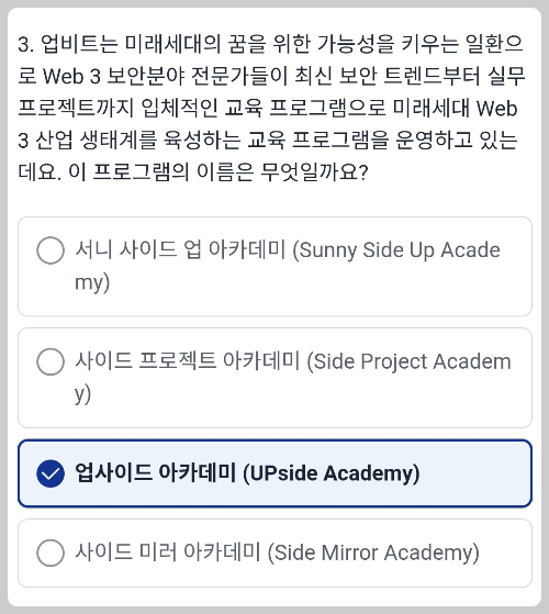 문제와 정답입니다. 매번 문제의 순서와 선택지가 바뀌기 때문에 정확하게 보고 고르셔야 합니다.