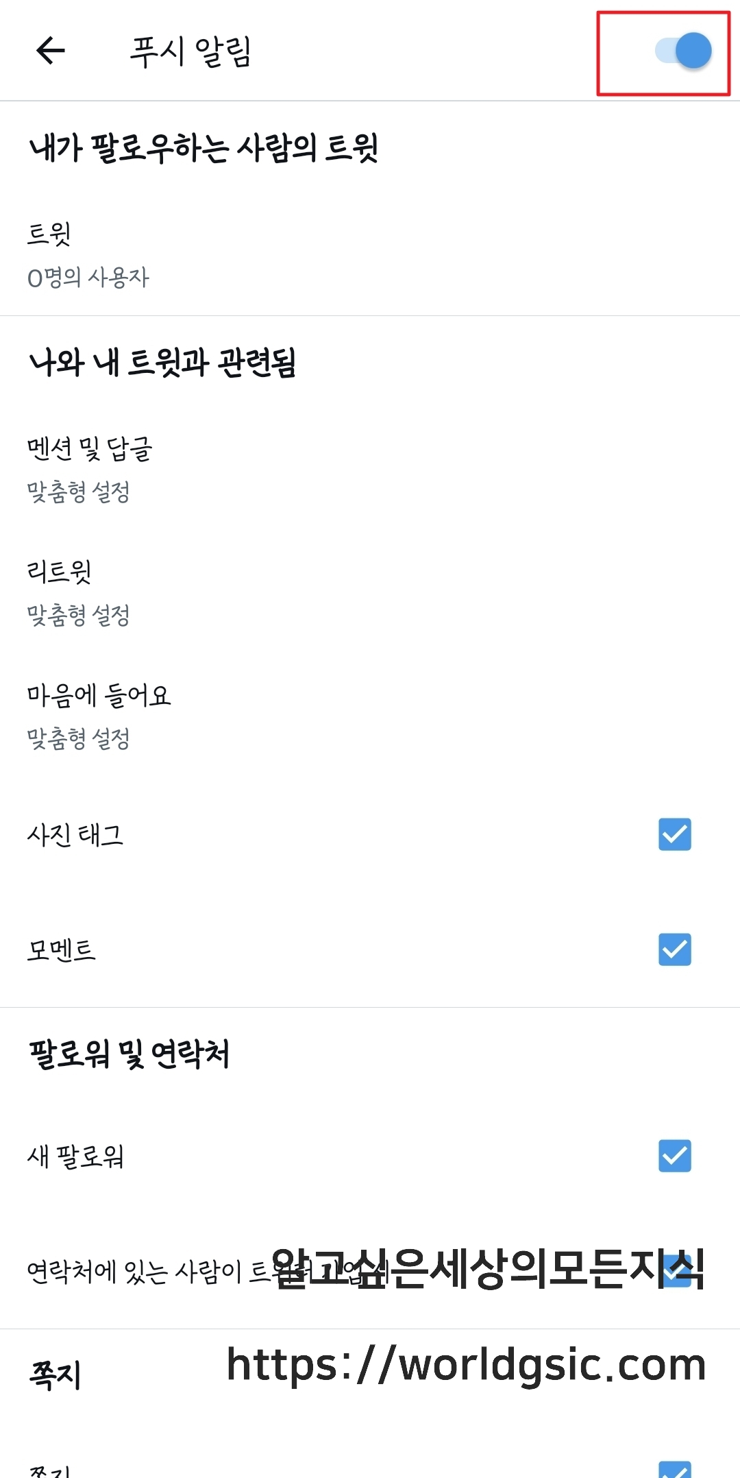 트위터 알림 끄는법
