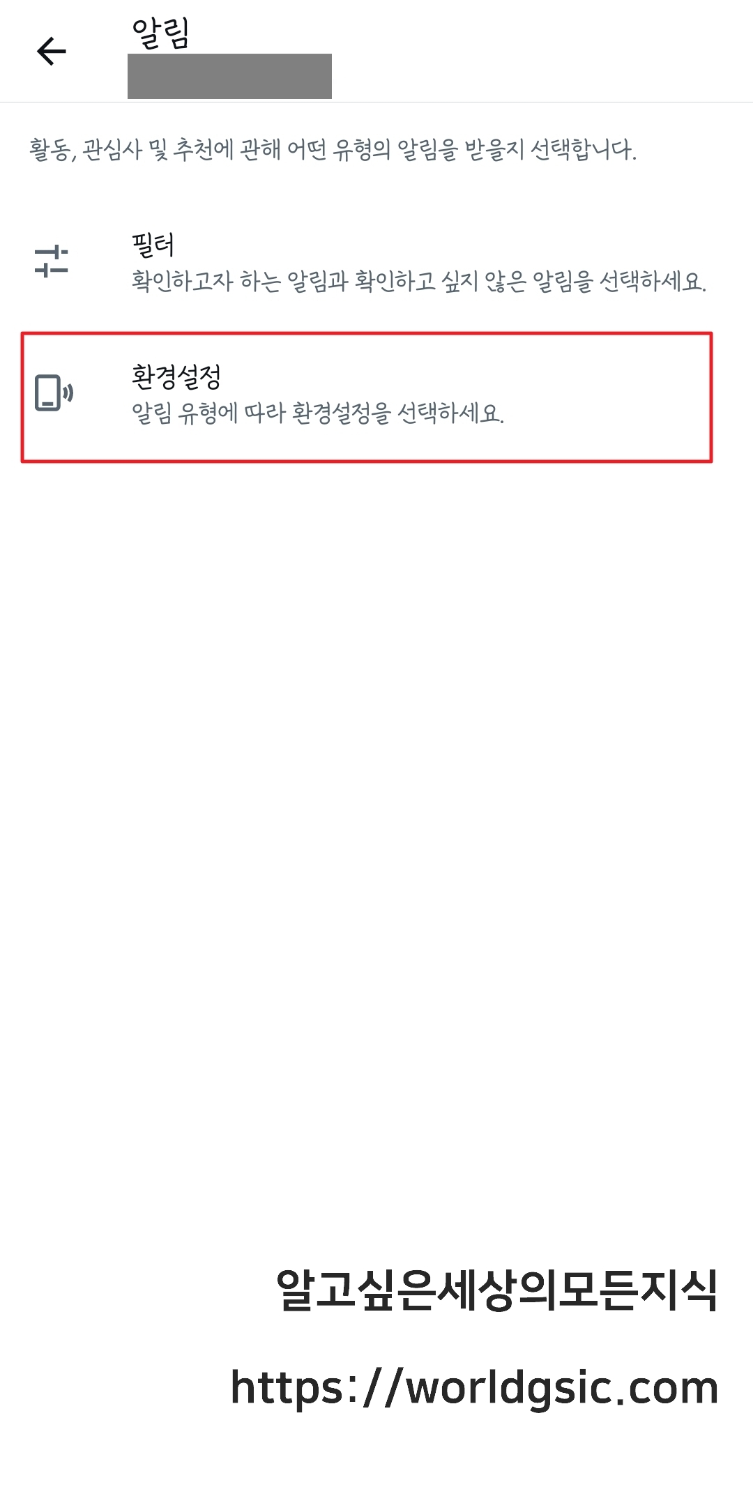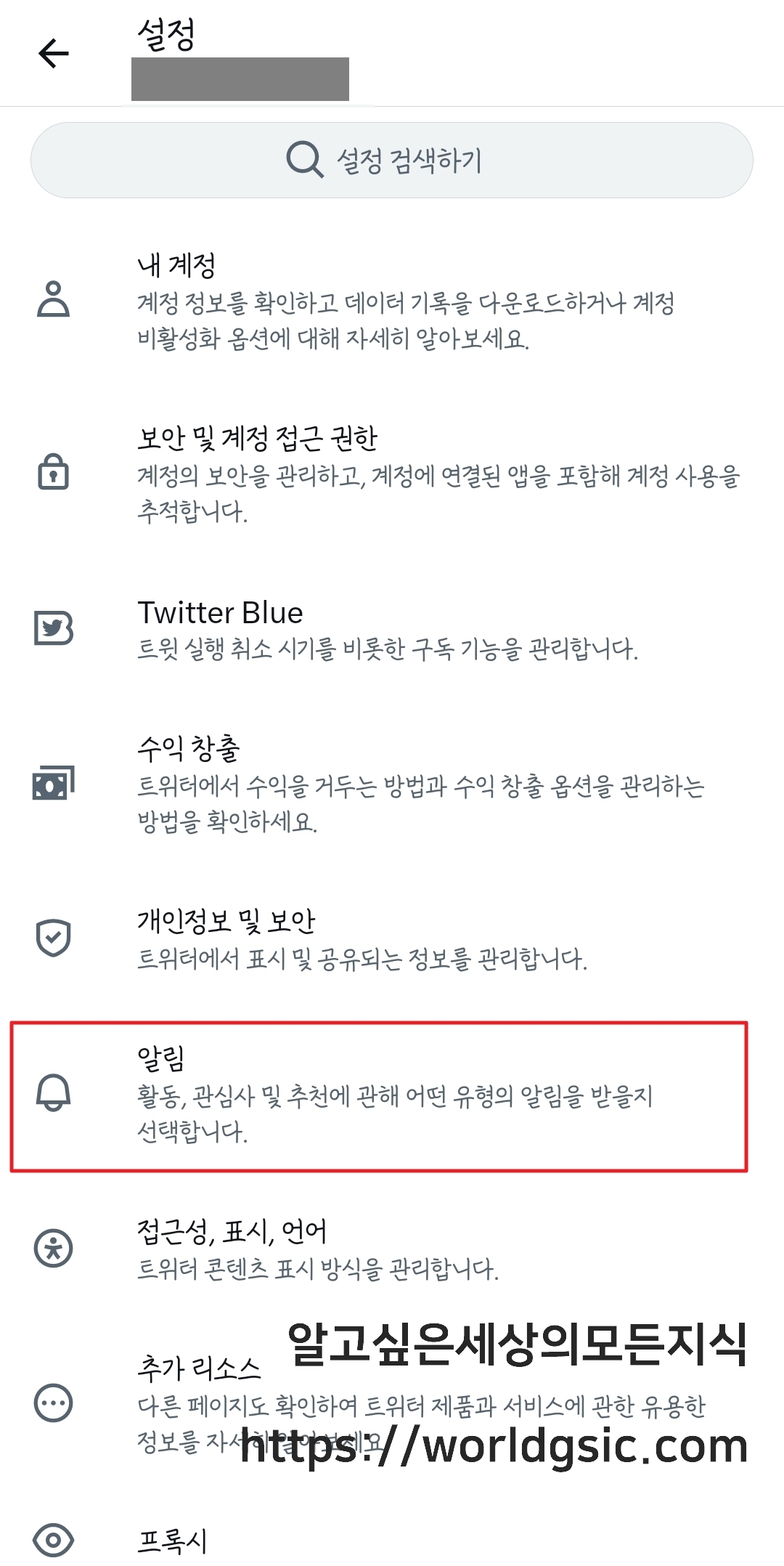 설정 하단에 보시면 알림이라고 있습니다. 눌러주세요.