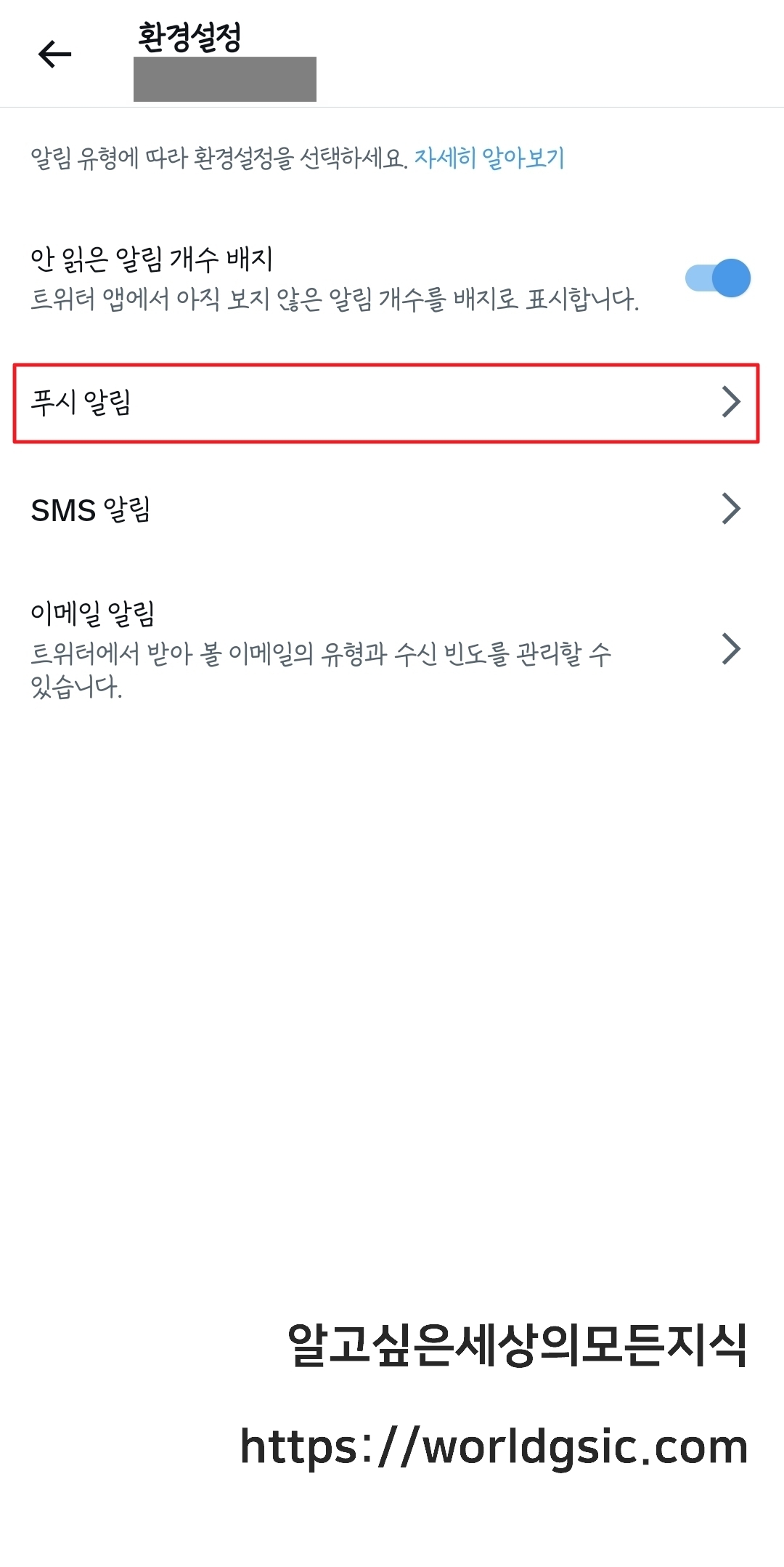 트위터 알림 끄는법
