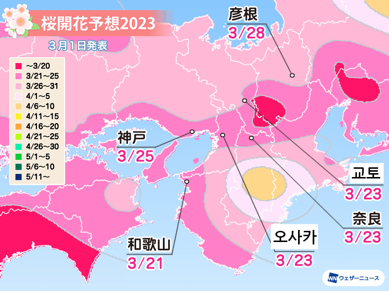 전국 명소의 개화 예상일