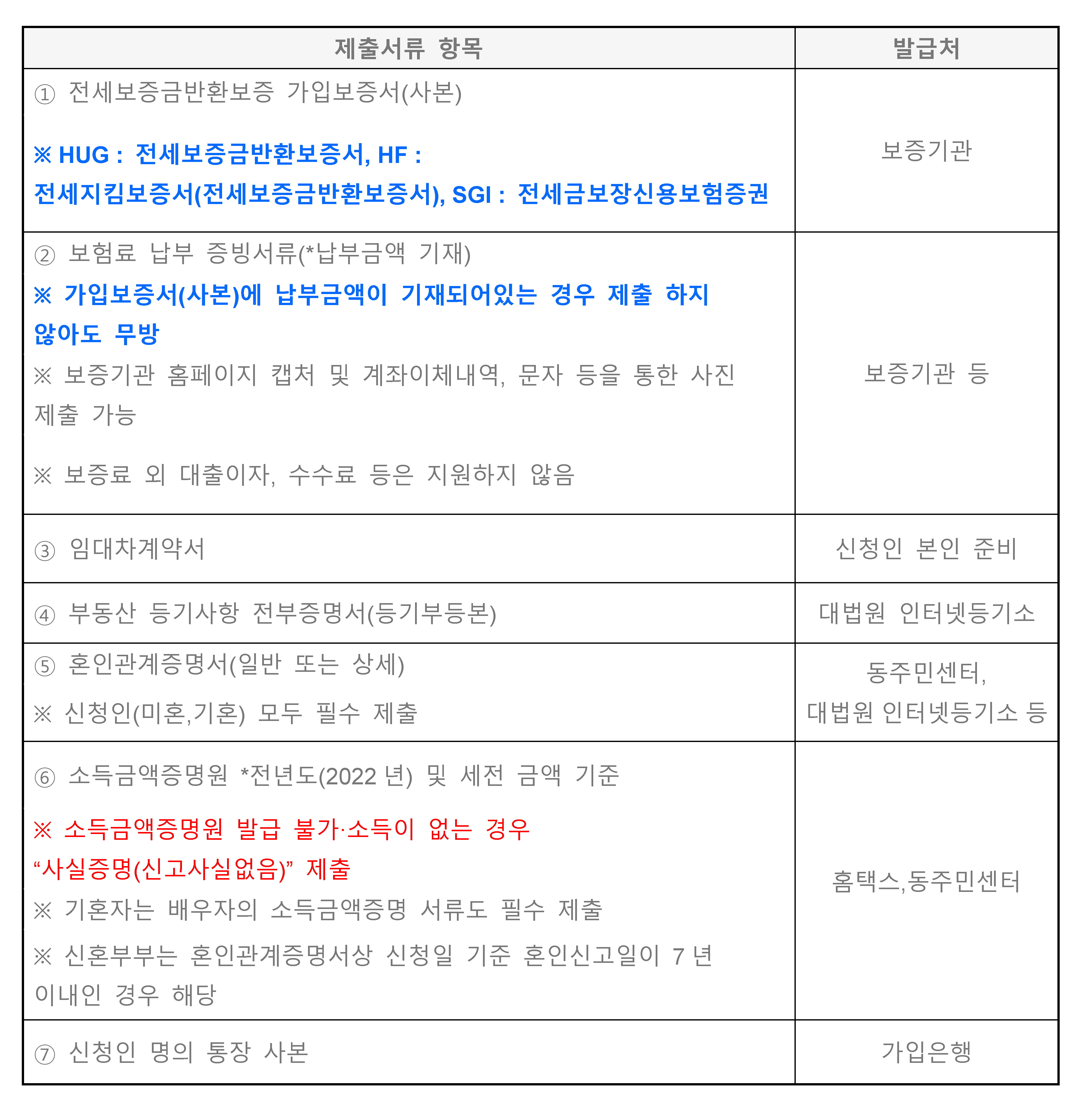 ※ 공공기관에서 발급받은 제출서류는 신청일 이전 1개월 이내 발급받은 서류로 제출